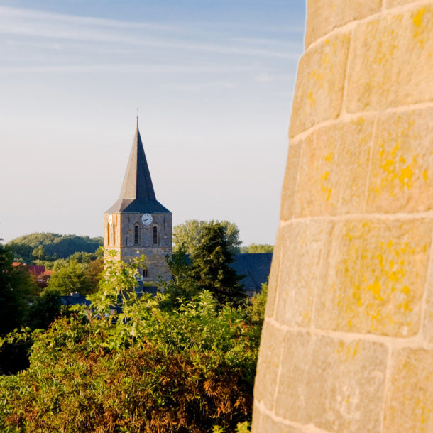 Blick vom Mühlenberg auf das Dorf und die Ev.-Ref. Kirche